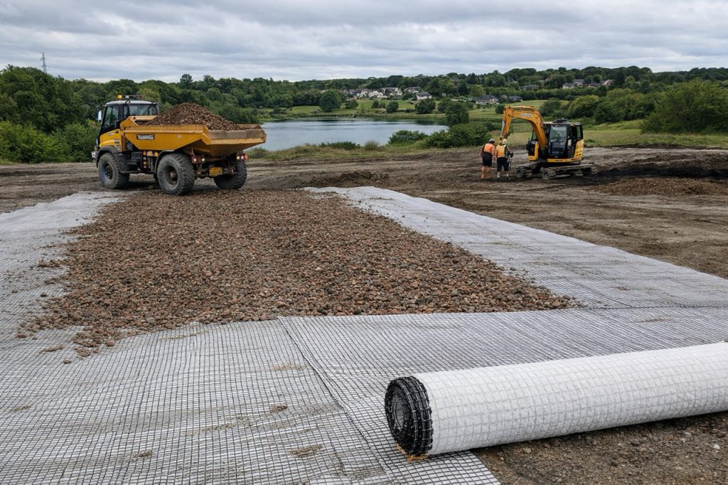 เหมาะสำหรับงานเสริมกำลังถนน โดยช่วยเพิ่มความสามารถในการรับน้ำหนักของชั้นดิน ลดการทรุดตัวและการแตกร้าวของผิวทาง ทำให้ถนนมีความมั่นคง แข็งแรง และยืดอายุการใช้งานได้อย่างมีประสิทธิภาพ